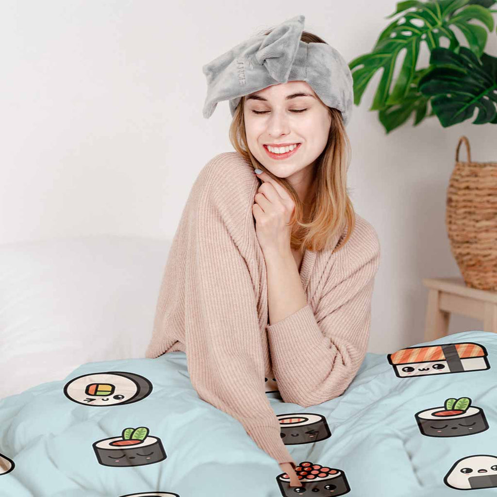 Therapiedecken Bettwäschen Set Hellblau mit Sushi