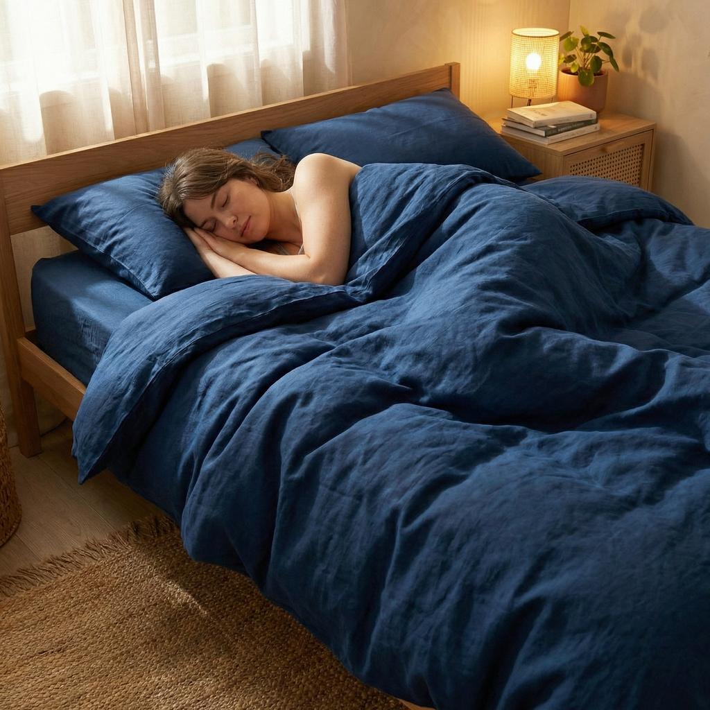 Der Bezug besteht aus 100 % reiner Baumwolle, ist besonders atmungsaktiv und damit ideal für den Sommer oder für Menschen, die schnell ins Schwitzen geraten. Auch an kühleren Tagen sorgt er für ein angenehm frisches und natürliches Schlafklima.