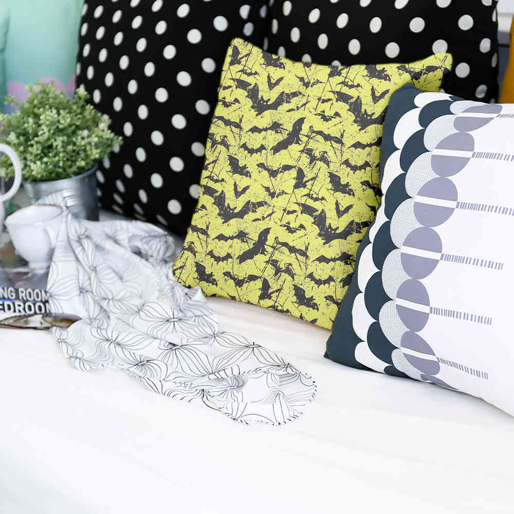 • Polyester: Polyester gefülltes Kissen + Bezug