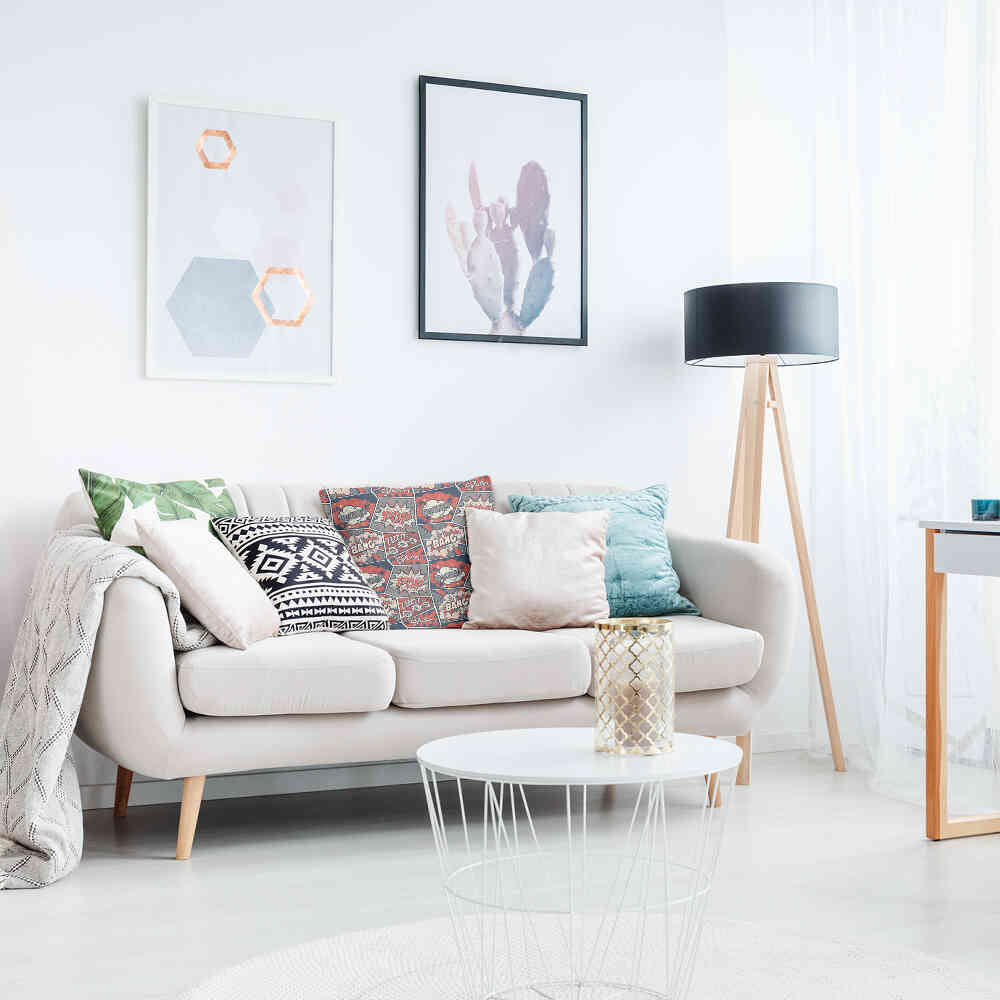 • Polyester: Polyester gefülltes Kissen + Bezug