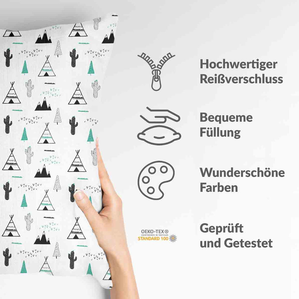 • Polyester: Polyester gefülltes Kissen + Bezug
